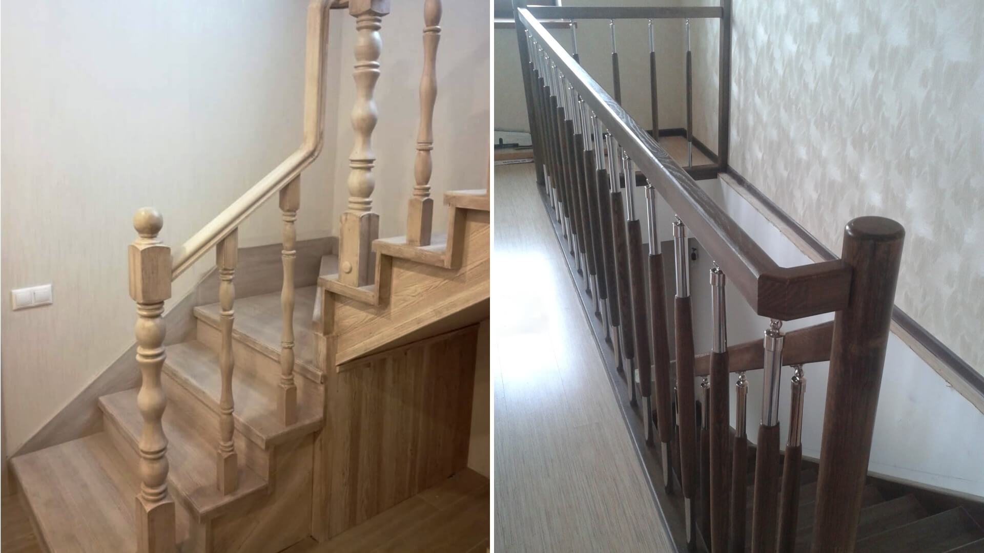 Перила (поручень деревянный плоский) Сосна или круглый Бук, Сосна диаметром 50мм., Поручень ПВХ различных цветов (плоский или круглый диаметром 50мм).